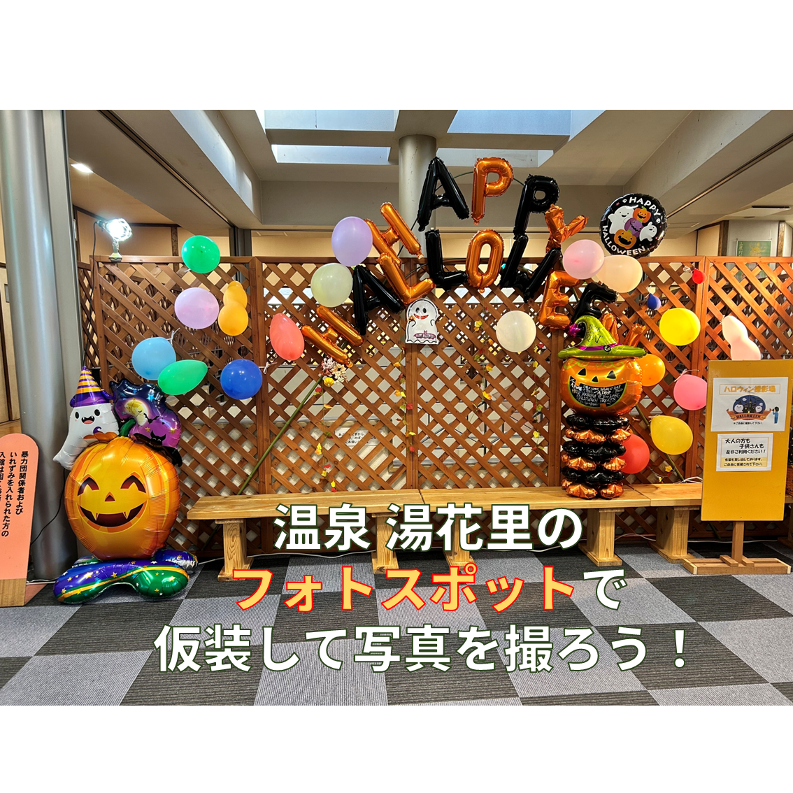 1F物産館及び2F温泉でスタッフに「トリック・オア・トリート!」と合言葉を言ったら、