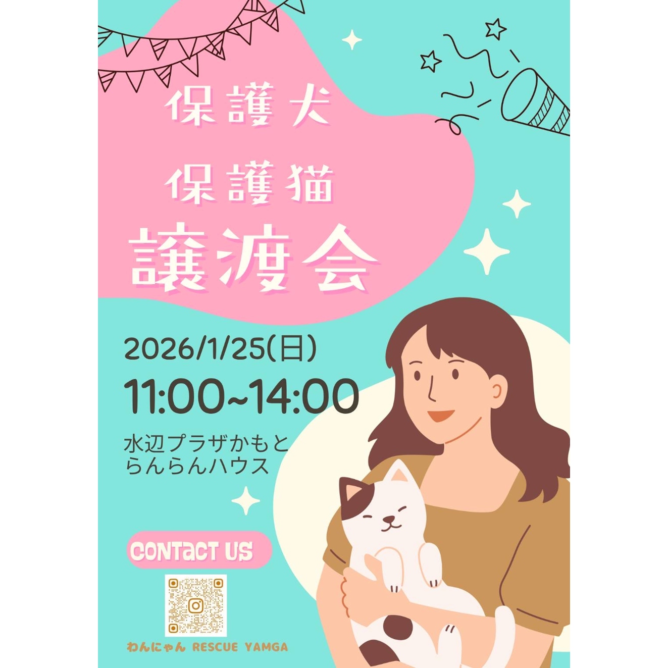 保護犬猫譲渡会のお知らせです🐶🐱 1/25(日)11:00~14:00 らんらんハウス(道の駅水辺プラザかもと敷地内) 主催はわんにゃんrescueYamaga @wan.nyan.rescueyamaga 可愛い猫ちゃん🐱とワンちゃん🐶たちがお出迎えしますよ~🐾 保護犬や保護猫を迎えるということは、そのワンちゃん、猫ちゃんの命を救うことになります。 また飼い主さんの生活も心も豊かになりますよ♪ ぜひこの機会に家族に迎えてみてはいかがでしょうか(^_-)-☆ 可愛い子たちが待ってますよ~=^_^= ※お問合せは主催のわんにゃんrescueYamagaさんへお願いします。
