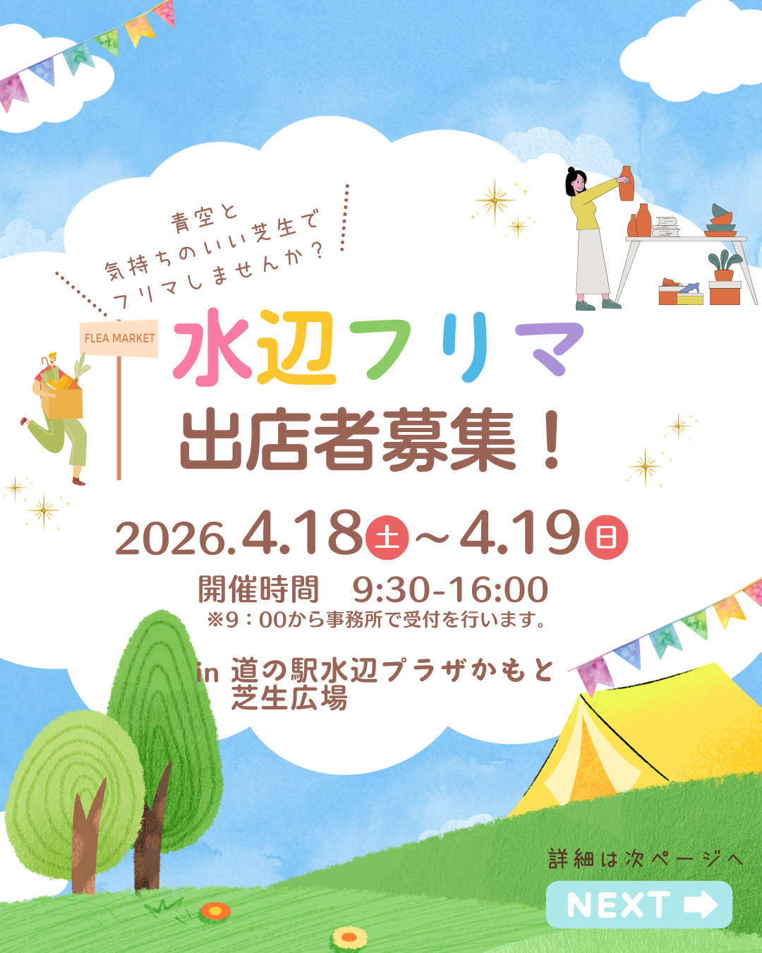 新年度!4月の水辺フリマ出店者募集のお知らせです。